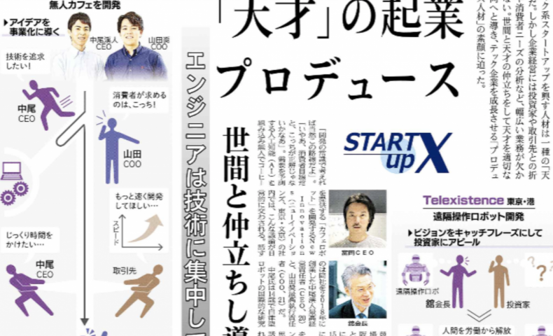 無人カフェロボット「ルートC」を開発する投資先、株式会社New Innovations代表取締役中尾さんとCOO山田さんが日経産業新聞の紙面にて掲載していただきました。